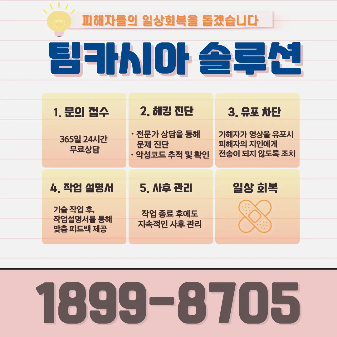 전문 업체·법률 전문가 연락: 온라인 범죄 대응 전문 업체나 변호사와 상의해 기술적 차단(더미 데이터 주입, 자동화 유포 시스템 차단), 플랫폼별 삭제 요청, 법적 조치(손해배상·형사 고소) 등을 병행하세요.