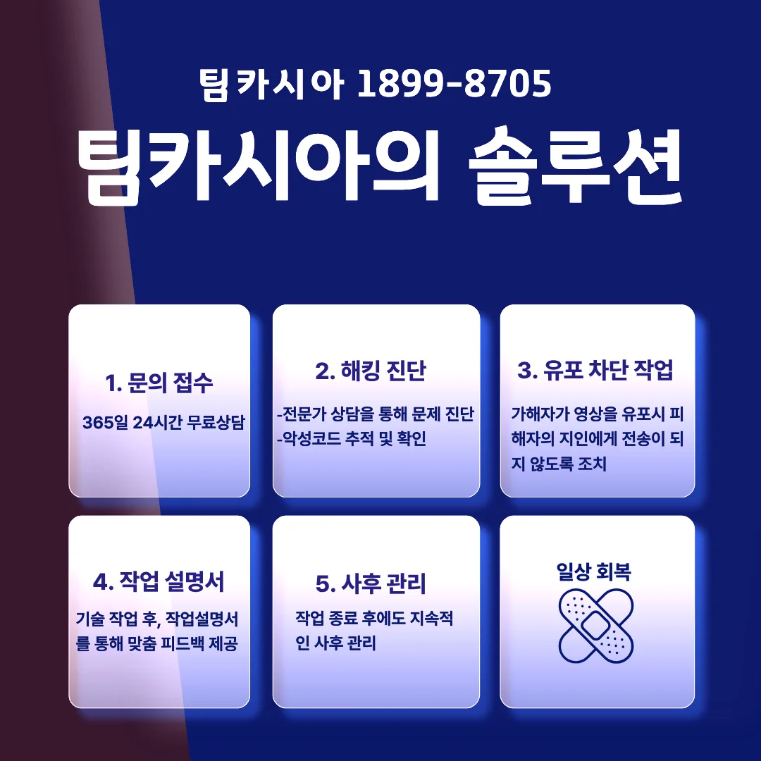 혹여나 카카오톡영섹해킹의 피해가 발생했다면 협박 메시지를 삭제하지 말고 증거를 확보해야 합니다. 이후에는 즉시 사이버수사대나 전문가에게 도움을 요청하는 것이 올바른 대처 방법입니다. 피해자가 혼자 해결하려고 하면 범죄자에게 휘둘릴 가능성이 높으므로 반드시 외부의 도움을 받아야 합니다.
