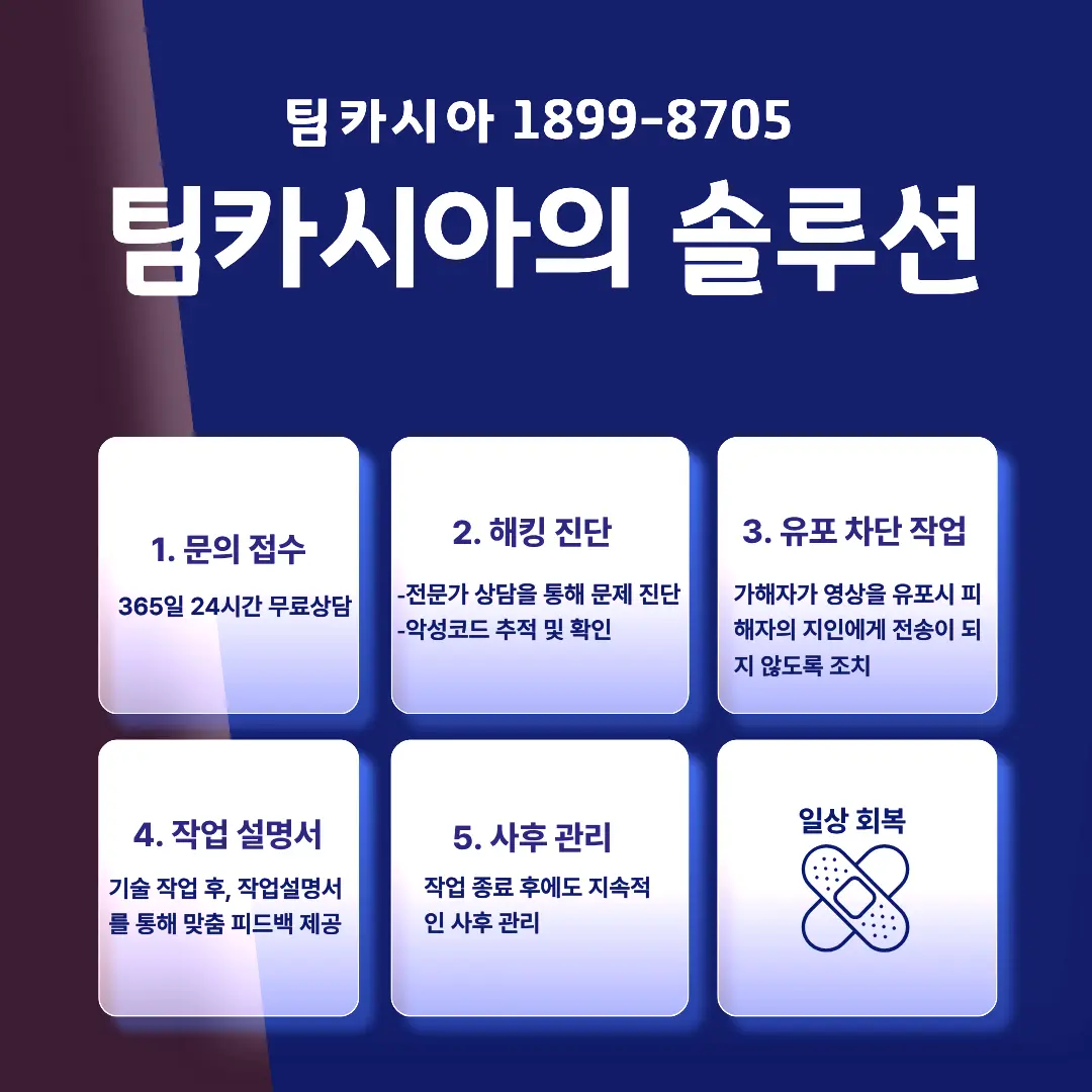 피해가 발생하면 혼자 해결하려 하지 말고 수사기관, 디지털 범죄 대응 전문 업체, 상담센터의 도움을 받으십시오. 이들 기관은 플랫폼 신고, 링크 삭제 요청, 법적 절차 안내 등 실무적 지원을 제공합니다.