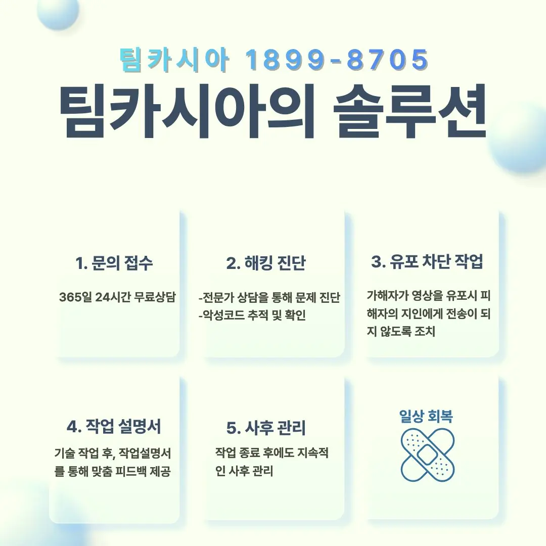 또한 사이버 범죄 전문 업체의 도움을 받아 유포 방지 조치를 취하거나, 계정과 기기의 보안 점검을 받는 것도 큰 도움이 됩니다.