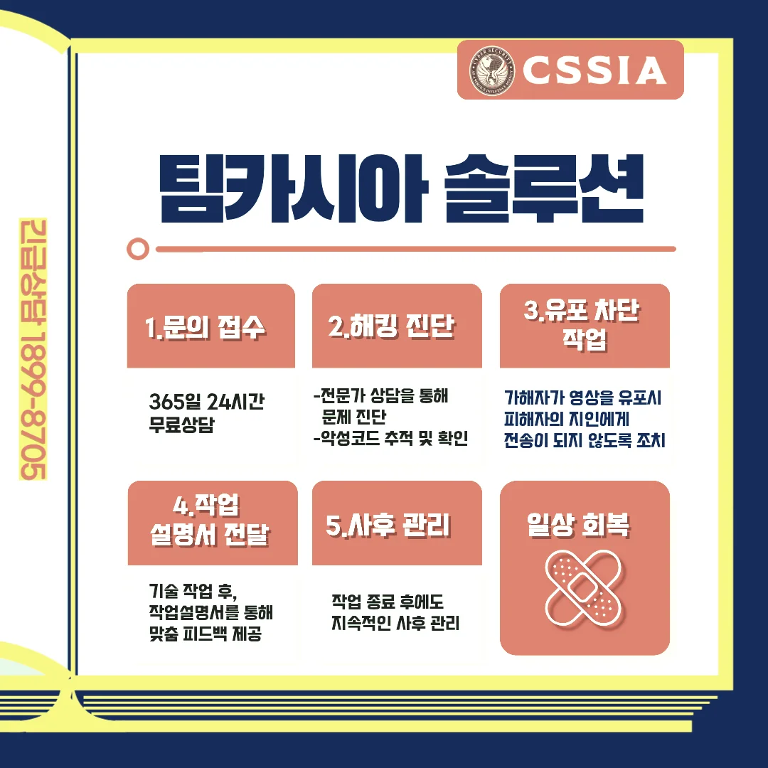 기술적으로 유포 경로를 차단하거나, 서버에서 삭제 요청을 대행해주는 보안 전문업체의 도움을 받는 것도 큰 도움이 됩니다.