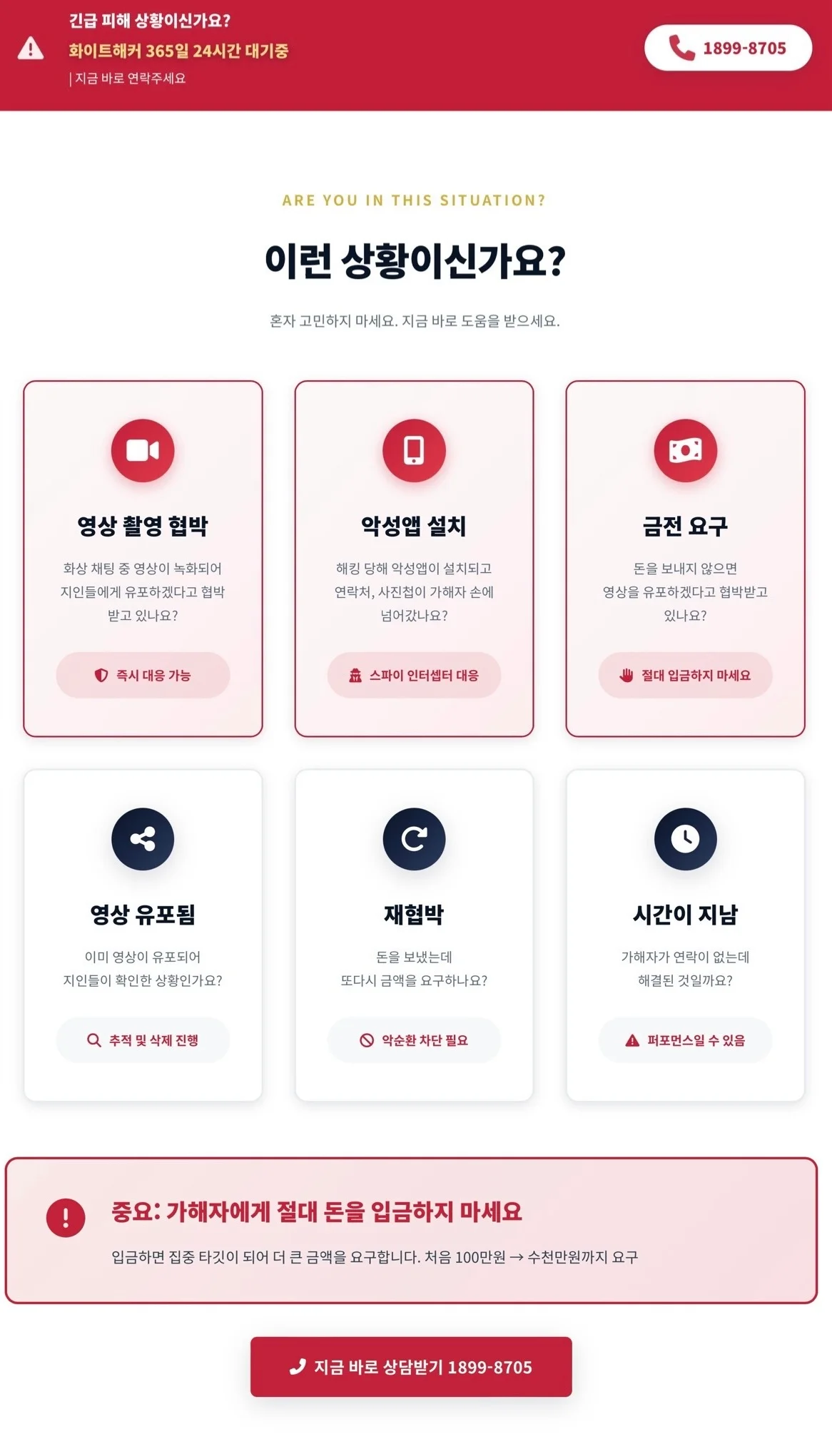 (가해자에게 절대 돈을 입금하지 마세요. 입금하면 집중 타깃이 되어 더 큰 큼액을 요구합니다. )