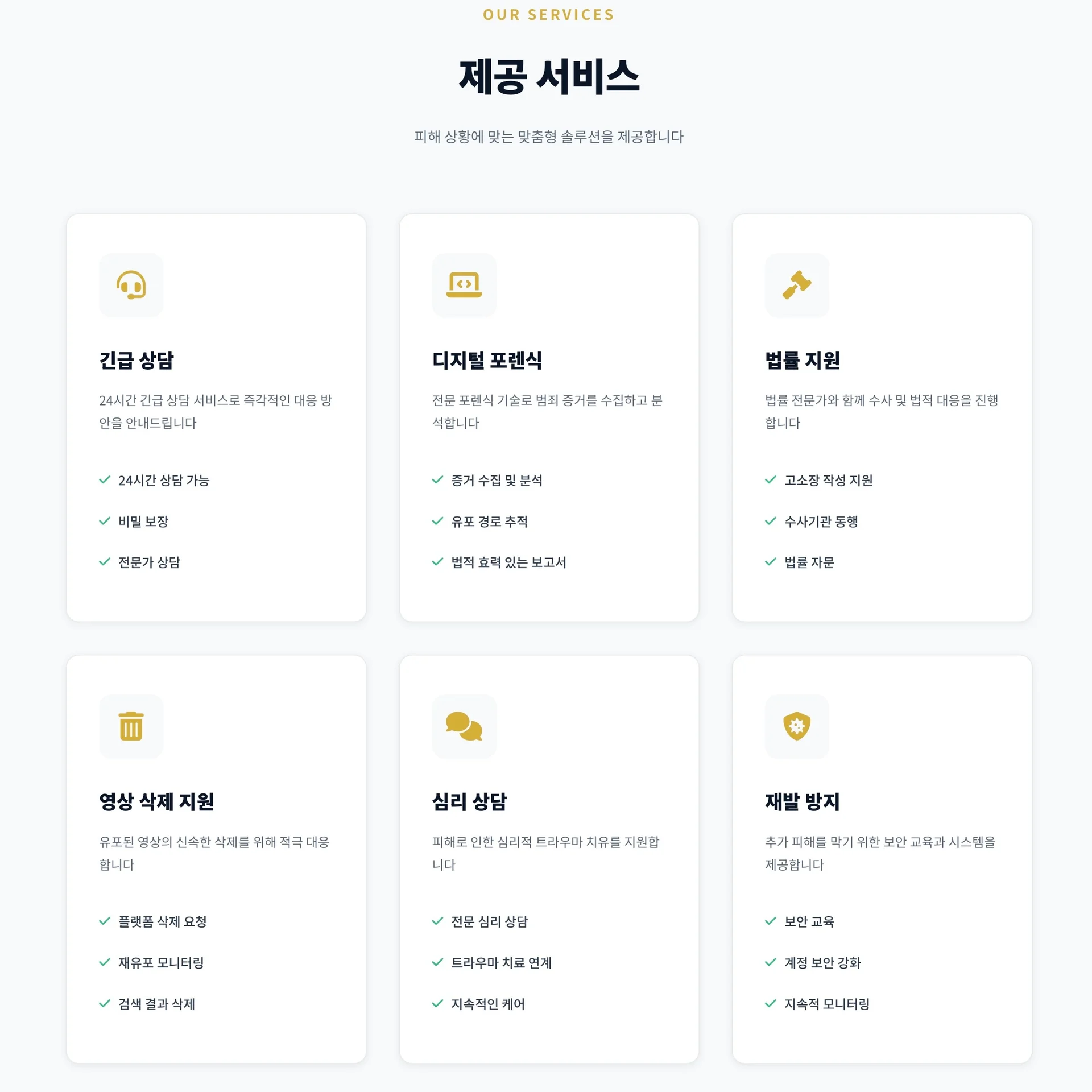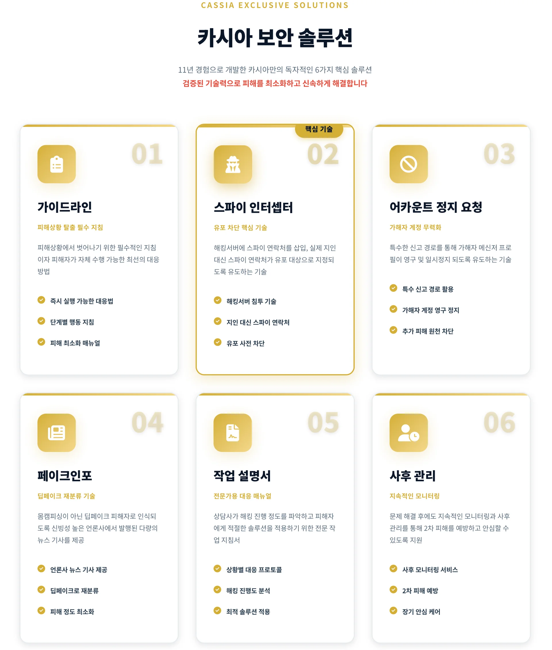고객이 안전한 일상으로 돌아갈 수 있도록 단계별 해결 방안을 제공합니다.