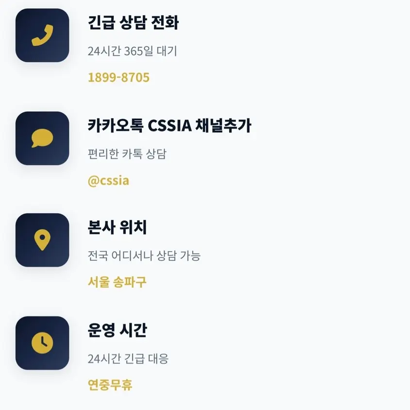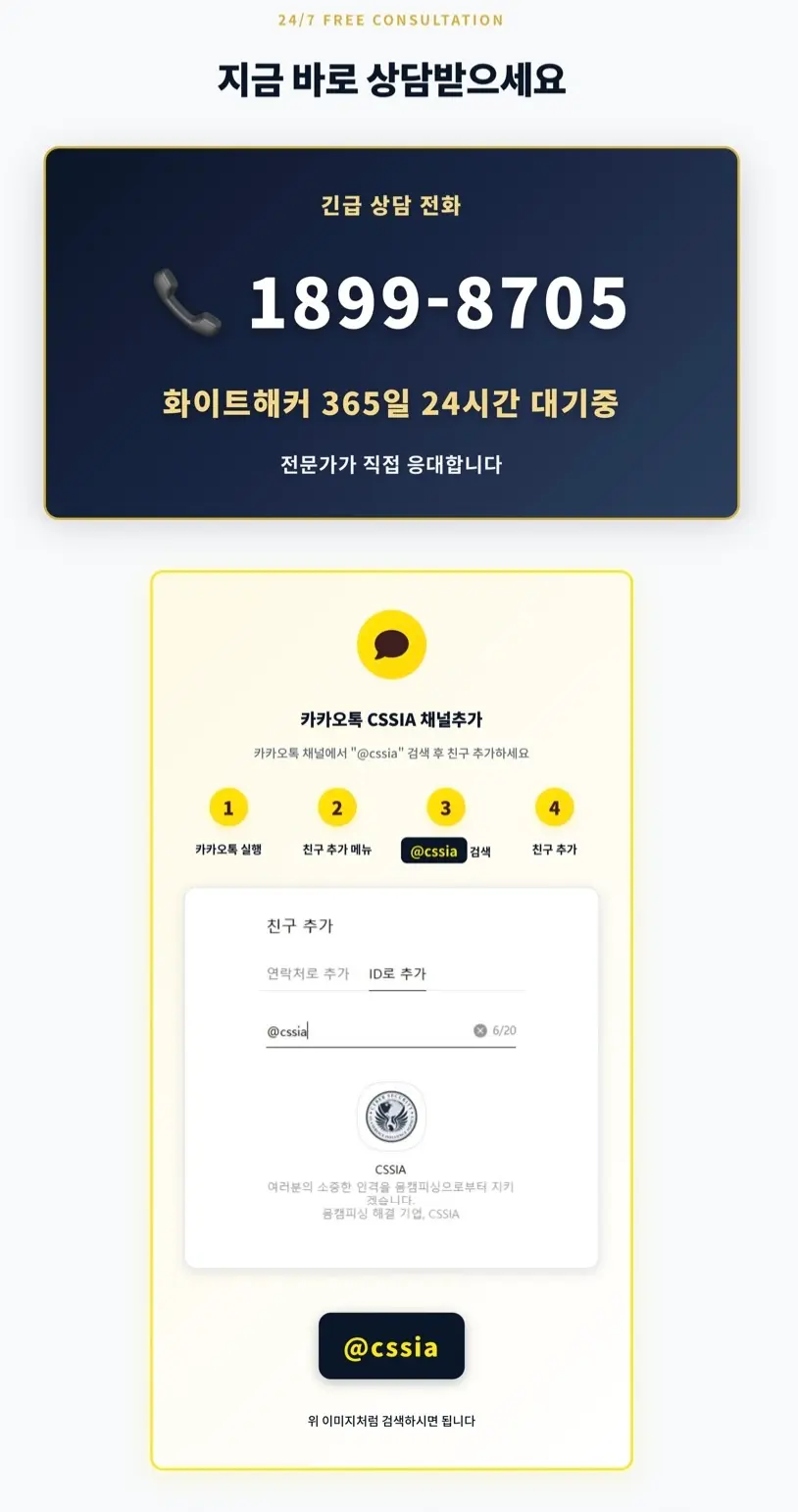 당신이 의지할 수 있는 곳, 팀카시아(CSSIA) 11년 무사고 경력 화이트해커가 직접 대응합니다.