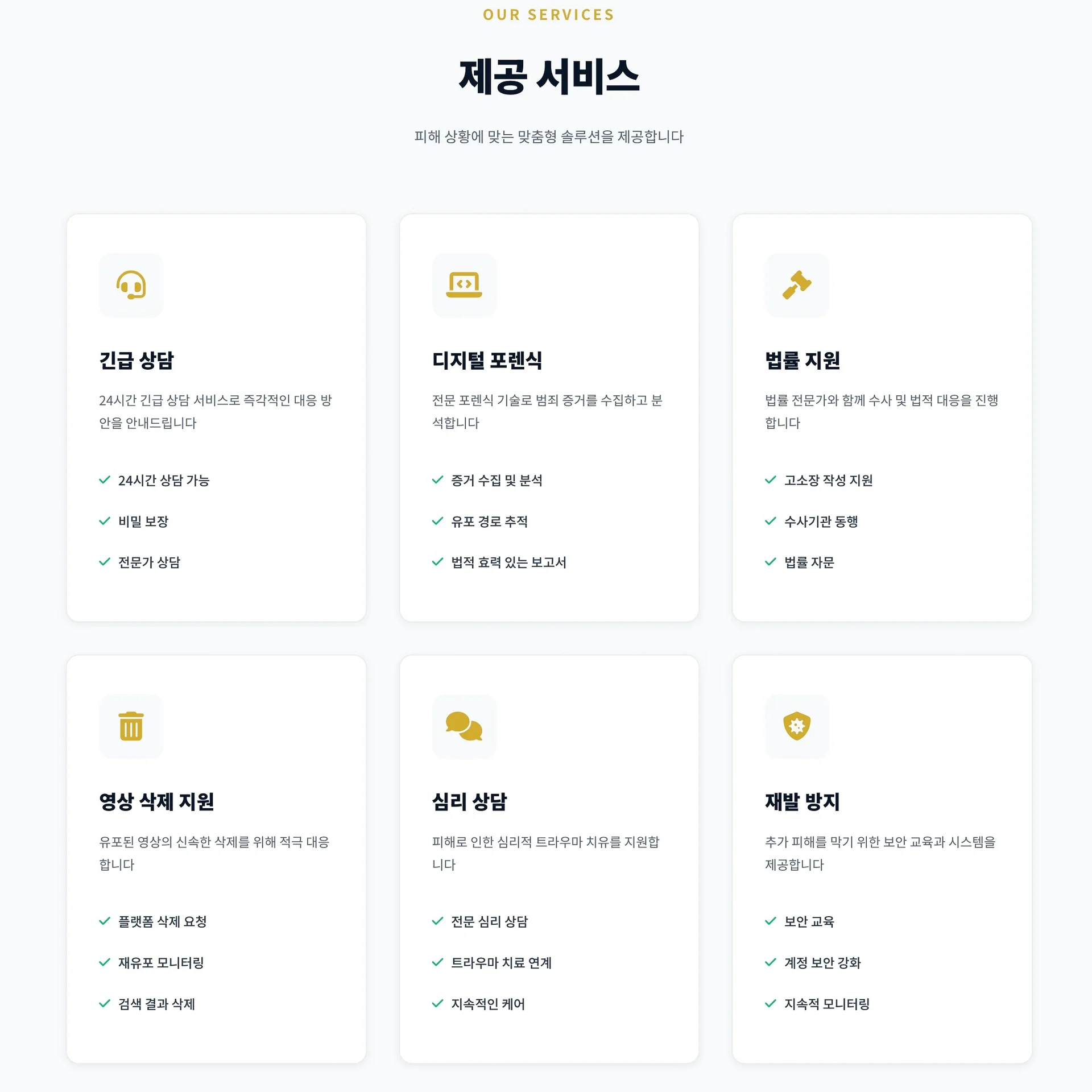 카시아는 “책임 해결”을 원칙으로, 피해자가 안전하게 일상으로 돌아갈 때까지 함께합니다.