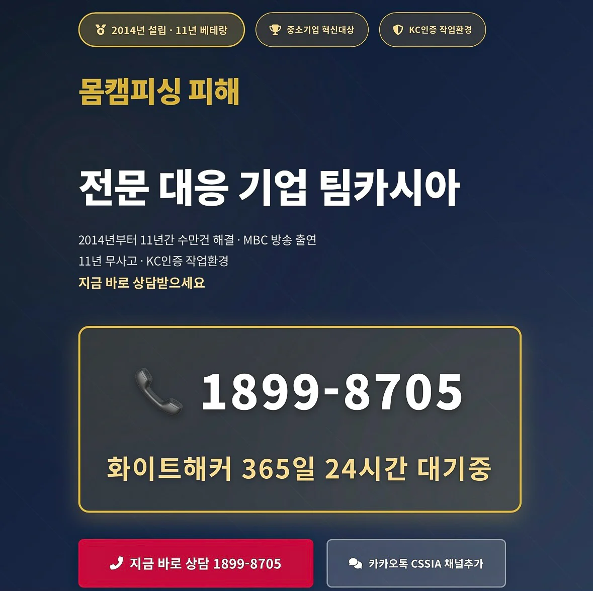 11년 무사고 화이트해커팀이 직접 대응하는 몸캠피싱 전문기업